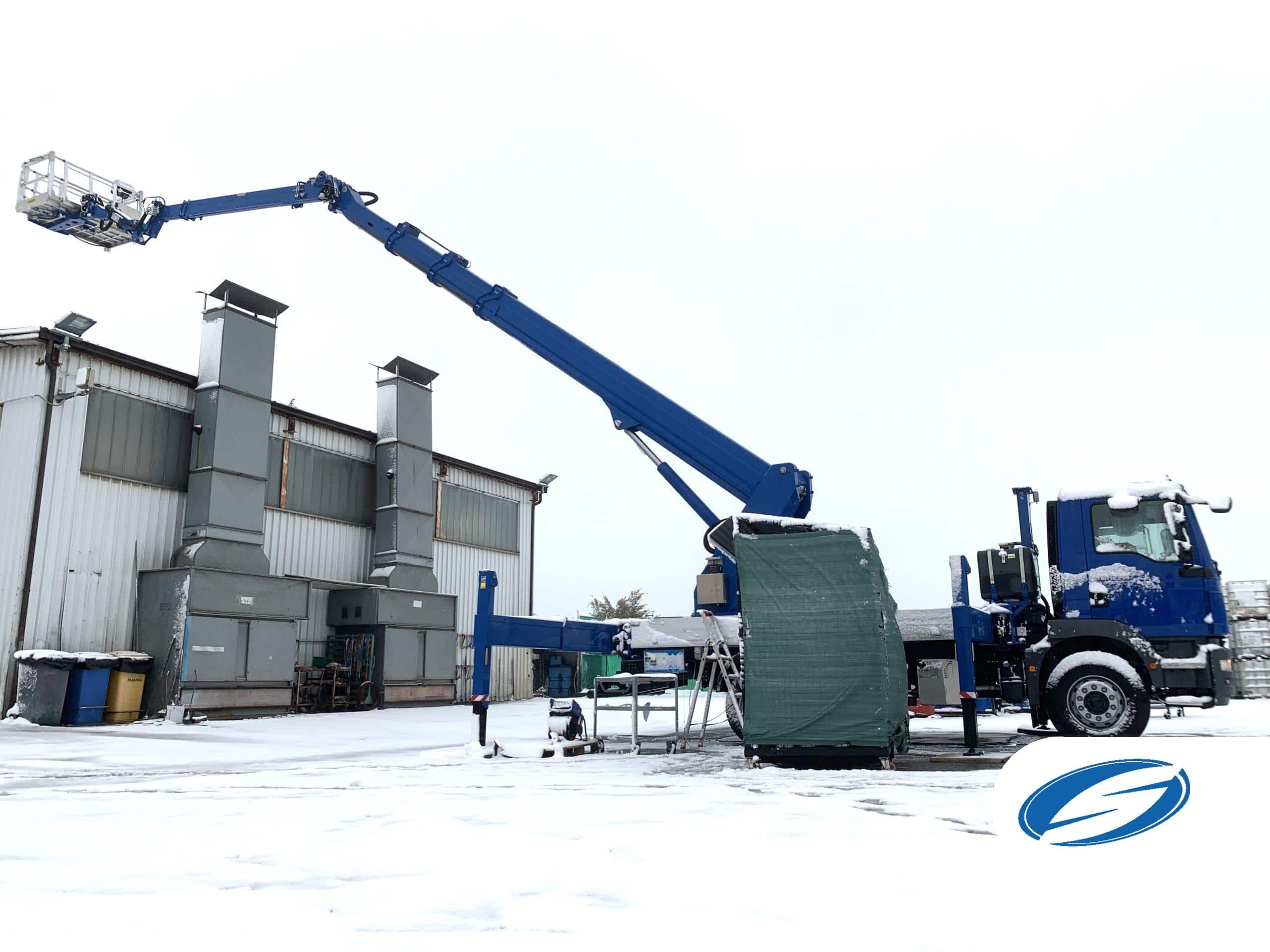 Atinge o inaltime de lucru de 39m si o raza orizontala de 30m, in plus are o capacitate mare de incarcare de 300 kg (3 operatori + material)