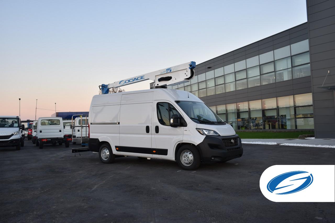 ForSte 15VTJ este o furgonetă cu cupă telescopică cu un JIB articulat. Atinge o înălțime de lucru de 14,4m(*), iar o rază orizontală de 8,5m. Coșul poate încărca până la 225 kg (2 operatori + material).