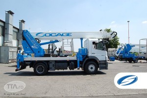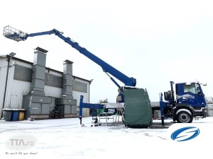 Atinge o inaltime de lucru de 39m si o raza orizontala de 30m, in plus are o capacitate mare de incarcare de 300 kg (3 operatori + material)